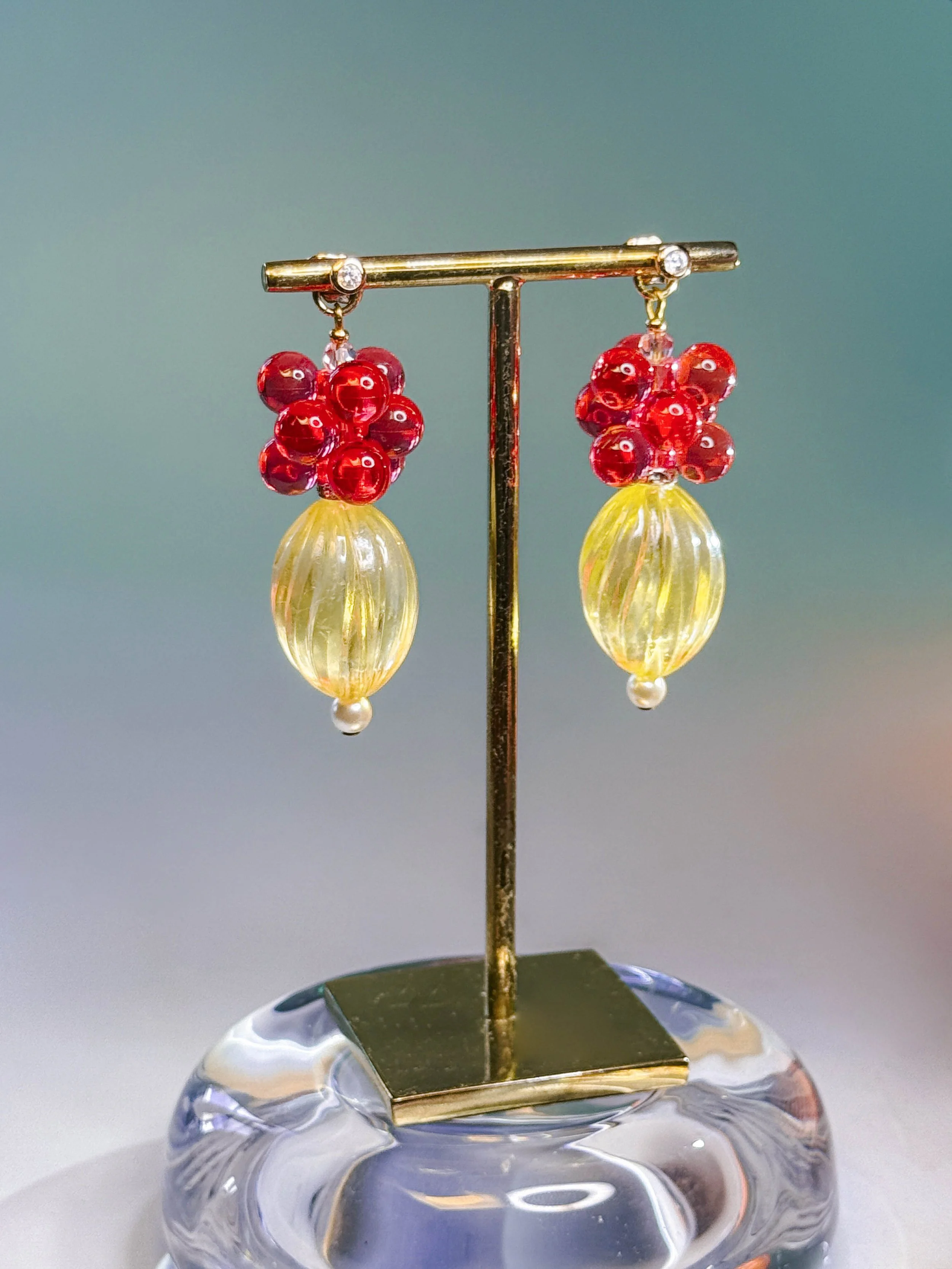 La fleur-raisin est mobile, ce qui lui permet un très beau mouvement sur le doigt, qui réfléchit toute la lumière et accompagne vos mouvements.