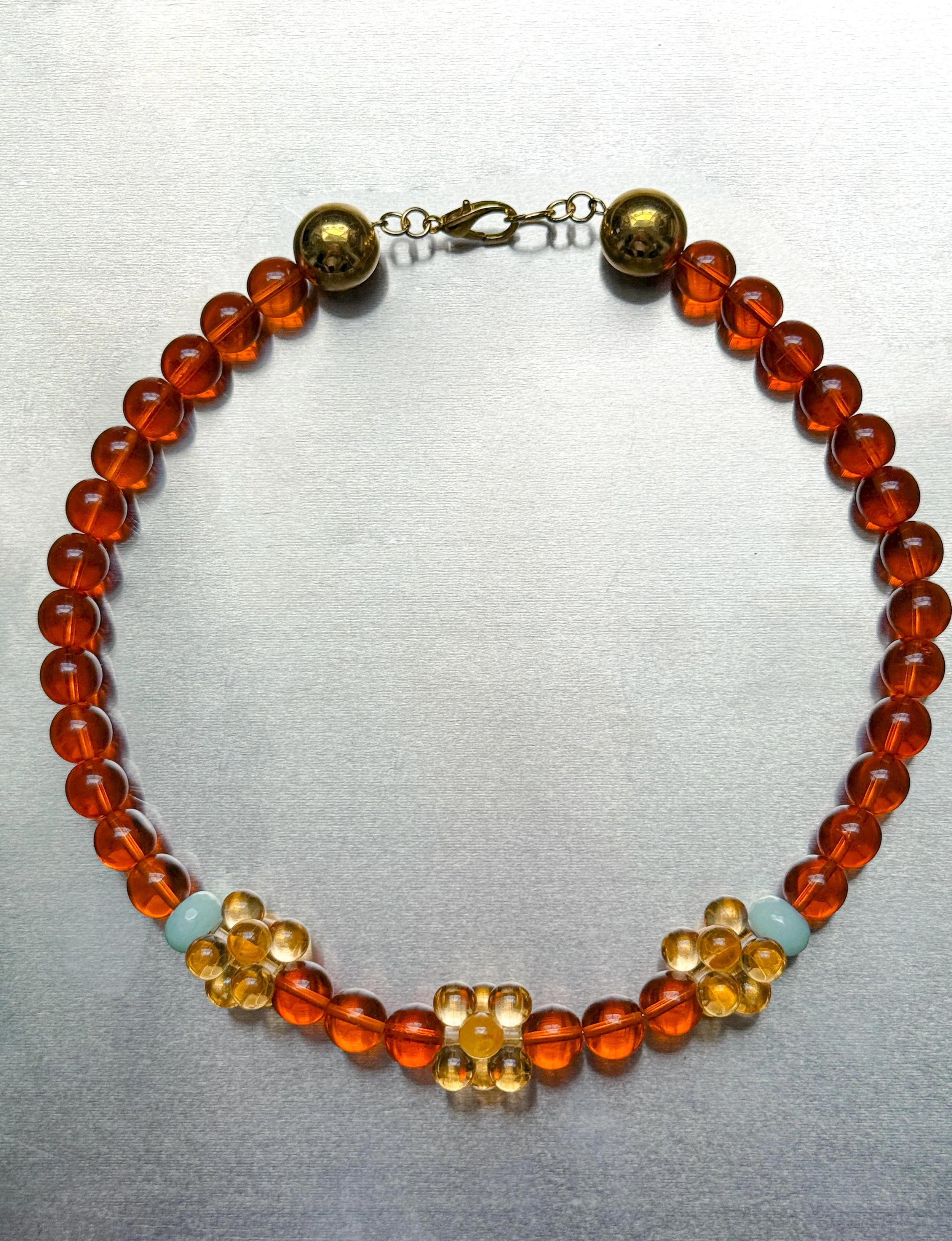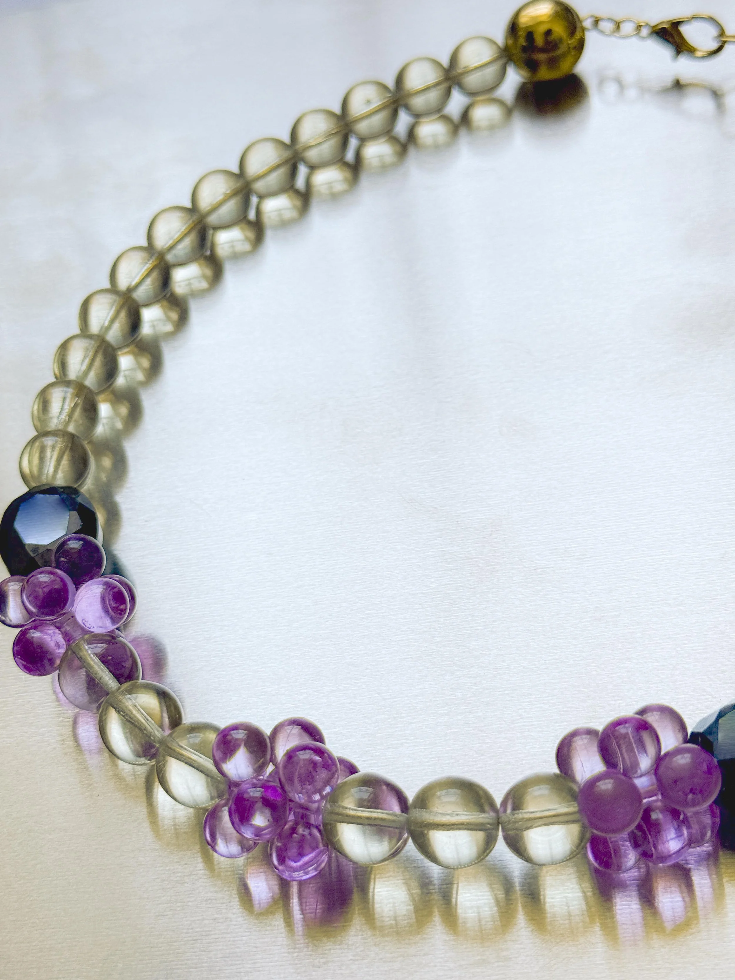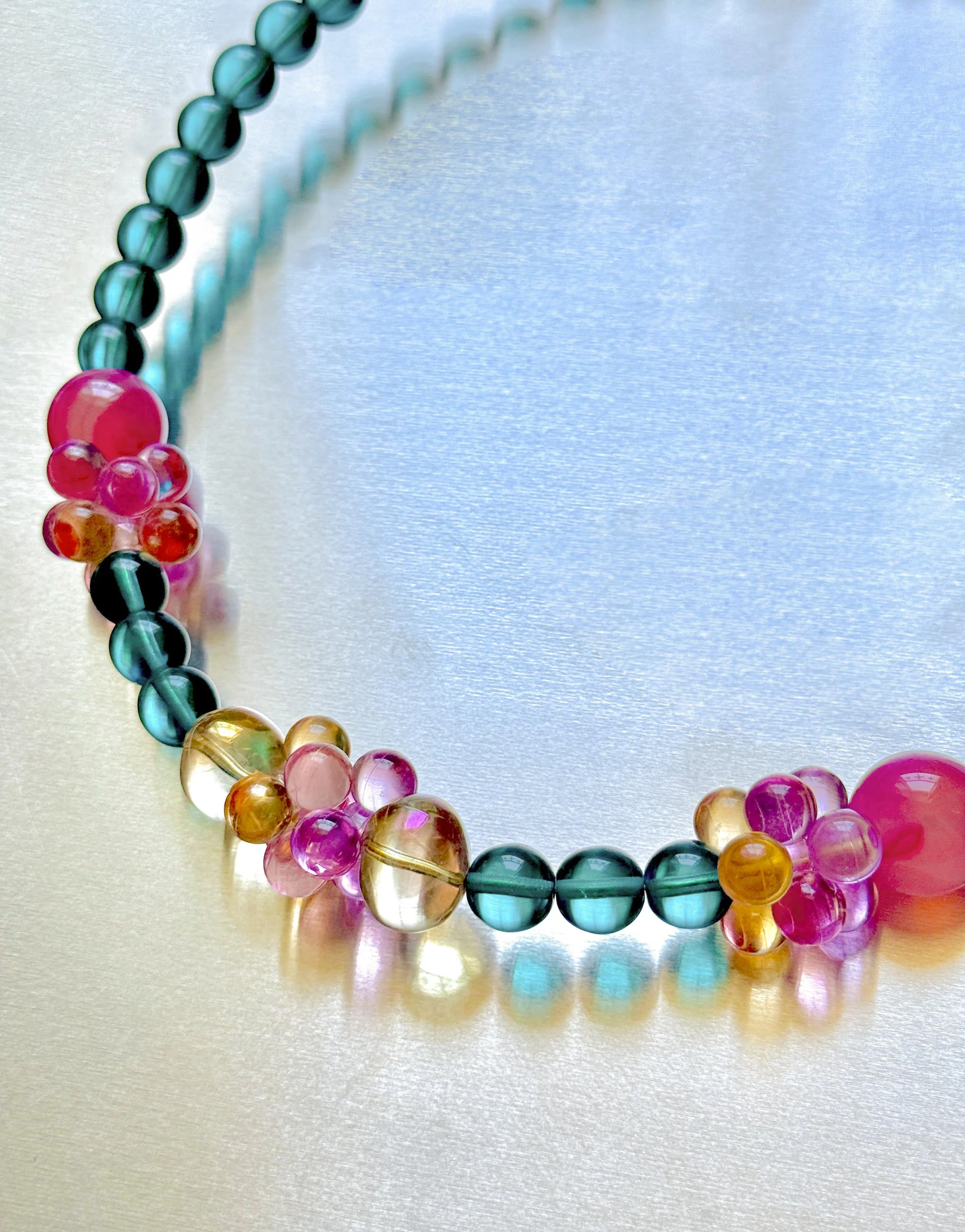 fleurs-raisins vertes - perles en hématites carrées dorées